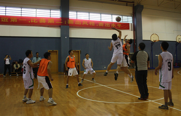 为丰富教职工课余文化生活、推广校园体育文化,促进教师身体健康及相互间友谊,校第二届“健身杯”篮球联赛于111在下沙校区体育馆开锣比赛。本次大赛由校工会、校体委主办,比赛将分两个阶段举行,第一阶段:根据全校报名队伍以抽签方式分成ABC三组,分别进行单循环赛,赛出小组名次;第二阶段,各组取前两名进入复赛,决出最终名次。目前各组比赛正如火如荼开展。
