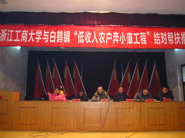 2011年12月9-10日,学校26个学院、部门分党委(总、直支)书记、分工会主席、校大学生艺术团等一行140余师生,分赴天台县白鹤镇开展结对帮扶与慰问活动,并与当地召开了“低收入农户奔小康工程”结对帮扶工作推进会,实地走访慰问了白鹤镇14个低收入农户集中村的100名困难农户,为他们送去了棉被、食用油及慰问金和总价值约5万元的图书资料,支援各村图书室建设。我校大学生艺术团还为当地百姓奉上一台由参加全国第三届大学生艺术展演节目组成的精彩纷呈的慰问演出。