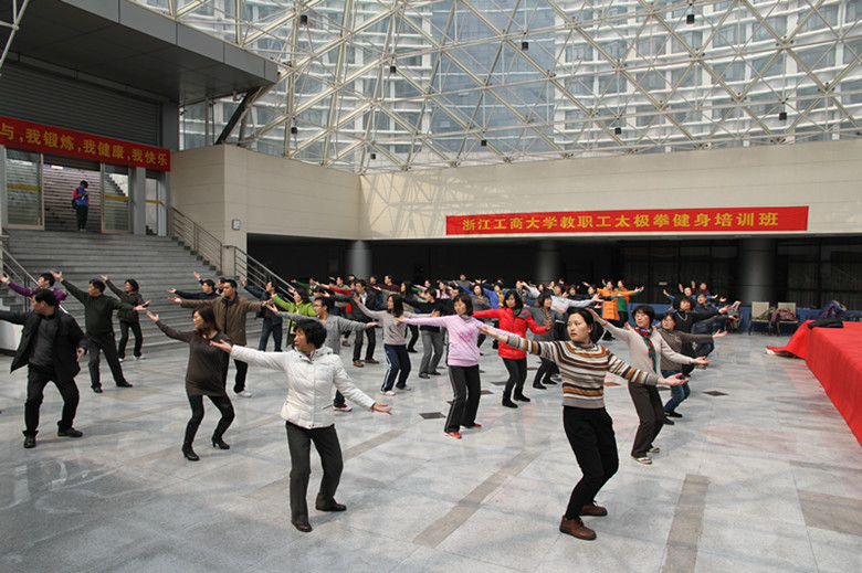 本期太极拳培训班是继2011年成功组织校内第一期太极拳培训后的又一次大型培训活动,由于广大及职工踊跃报名,人数众多。浙江工商大学工会精心筹备,聘请教练,安排多个培训班,尽可能满足教职工学习愿望。同时,校工会衷心希望通过培训,能够使广大教职员工们能在太极拳运动中得到健康,汲取智慧,做到养练结合,以更充沛的精力和健康的体魄快乐地工作和生活