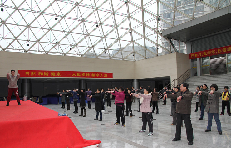 太极拳是我国的国粹,是集养身、保健于一体的健身运动。它融合了以阴阳为基础的经络学说,将意识、呼吸、动作三者结合为一,内外双修,身心并练,在锻炼身体的同时,还有助于人的心性的养成,适合节奏紧张、工作繁忙的现代社会需要。常年练习太极可强身健体、修身养性、陶冶情操,非常适宜处于紧张、高效、长时间伏案工作状态的教职员工们的运动需求。