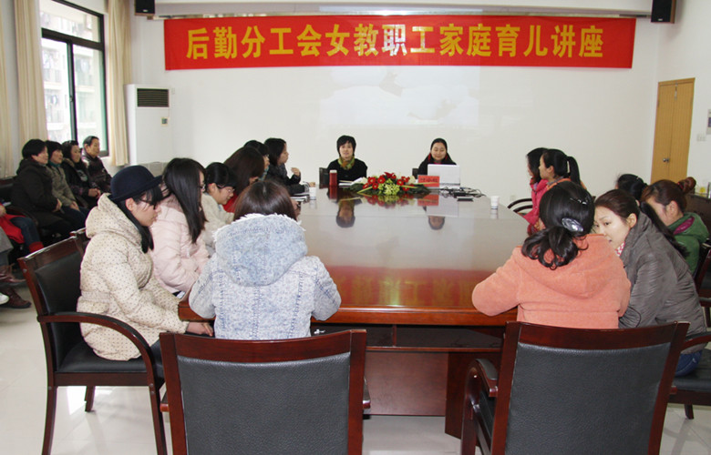 为庆祝三八国际妇女节,满足后勤服务中心年轻女教工对科学育儿知识的需求,帮助年轻妈妈们树立正确的育儿观念,丰富育儿知识,从而使她们更好承担起抚育孩子的责任和义务,后勤分工会邀请浙师大杭幼师附属彩虹城幼儿园园长叶小红女士来我校举行家庭育儿知识讲座,受到了广大女教工的欢迎。