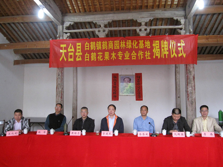 白水村现有花果木面积420亩,品种35种,具备一定的种植规模,但由于缺少专业技术指导,资金缺乏等条件制约,特别是缺乏自主品牌培育、市场发展狭窄。为了突破发展瓶颈,进而推动白鹤镇走上有科技创新特色的、现代化绿色产业的富民发展道路,学校积极与白鹤镇党委人民政府、天台县繁荣园林绿化有限公司、白水村果木合作社等接洽联系,联手成立了鹤商园林绿化基地——“天台县白鹤花果木专业合作社”,通过共建“政府引导、社会参与、市场连接、农户创业、多方共赢”的帮扶机制,大力实施低收入农户创业增收工程,进一步贯彻落实省委省政府工作要求。