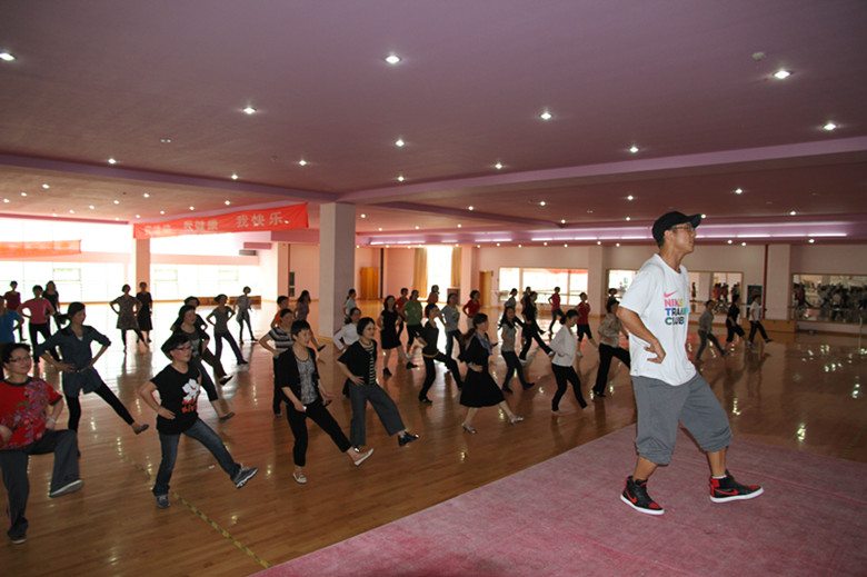 排舞是一种既可个人独享,又可与团体共乐的舞蹈,风格创新,简单易学,易于推广。融合了拉丁舞、街舞等多种舞蹈的风格,节奏有快有慢,舞步有难有易,舞曲风格各异,便于自由组合,舞步和音乐都有广泛的创新空间,简单、易学,老少皆宜,健身效果非常好。鉴于此,校工会精心筹备,聘请专业教师,专门举办教职工排舞培训班予以推广,目前排舞已成为了深受我校教职工欢迎的体育健身项目。