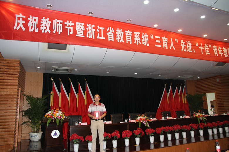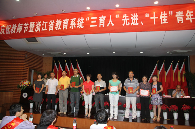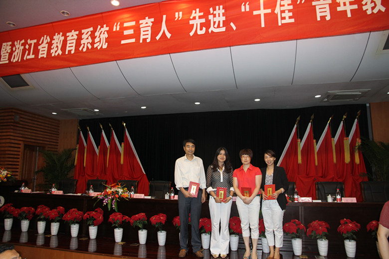 会上,对2011—2012年度浙江省高校“三育人”先进集体和先进个人、“十佳”青年教师进行了表彰,省教育工会副主席陈勇、王卫为先进代表颁发了奖状及荣誉证书。我校信息与电子工程学院喜获2011—2012年度全省高校“三育人”先进集体,我校教务处副处长华就昆教授、管理学院市场营销系主任顾春梅教授、统计学院学办主任张燕妮老师、保卫处陈春萍老师等4位同志喜获2011—2012年度全省高校“三育人”先进个人荣誉称号;此外,我校管理学院副院长金杨华教授、信电学院王光庆副教授同时喜获浙江省首届“五星级”青年教师荣誉称号。