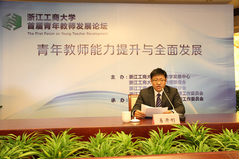 李逸凡主席代表省教育工会对论坛的举办表示热烈祝贺。她指出,浙江工商大学青年教师的提升与发展论坛的举办,开创省内高校推进青年教师成长的先河。高等教育大众化发展的过程中,青年教师的队伍越来越庞大,青年教师队伍的建设与发展任务繁重,来自家庭、事业、社会的多重压力,使得青年教师个人成长发展的压力日益增大。因此,李主席希望青年教师:充分利用学校创造的良好平台,抓住机遇,相互学习、广泛交流,与时俱进,共同提高影响、引导学生的能力。同时,她也希望浙江工商大学青年教师发展论坛能够办出特色、办出成果,争取创建成为一项高品质、有影响力、有生命力的校园文化品牌项目。