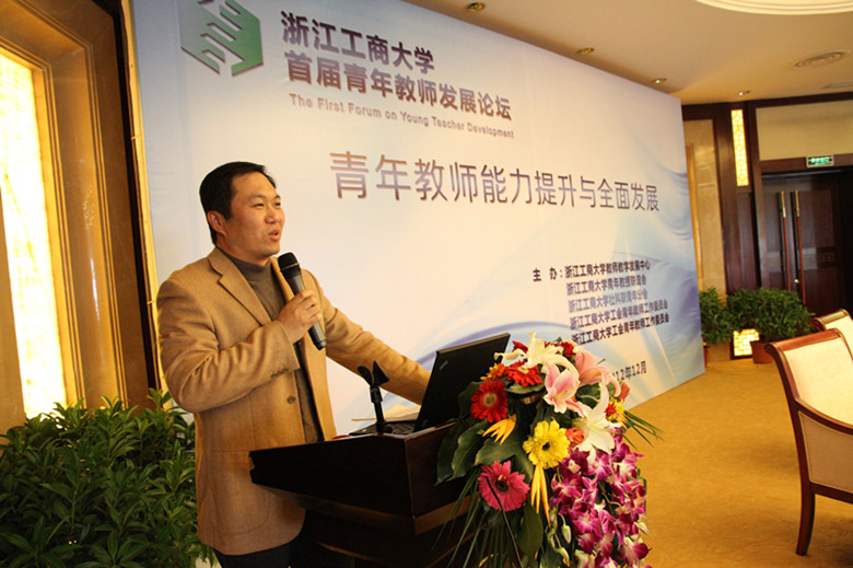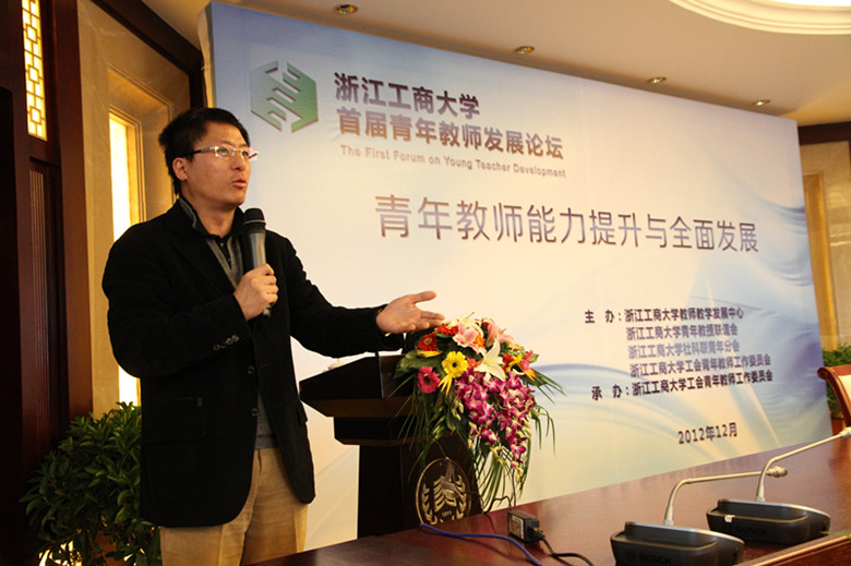 论坛主题报告阶段,上海海事大学胡志华博士,省教育工会青工委主任、浙江大学魏江教授,省首届十佳青年教师、浙江工业大学艾宁博士和我校首届十佳青年教师郭宝才副教授分别以“教学、科研与社会服务的协调发展”、“青年教师成长战略”、“青年教师成长体会”、“青年教师的教与学”等为主题,向与会代表分享自己的成功经验和体会,鼓励广大青年教师勇于面临发展过程中的各种压力和困难,要有不断进步的动力,真心热爱教师这一光辉的职业,协调教学与科研平衡,享受与学生一起成长的快乐。