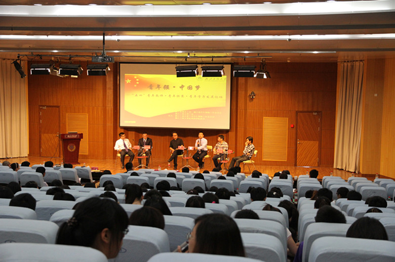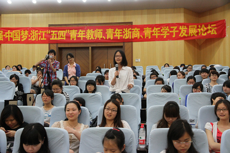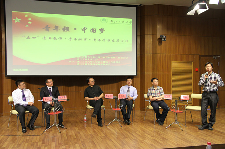 为认真学习和宣传贯彻习总书记“五四”重要讲话精神,弘扬五四爱国传统,分享青年浙商创业智慧,展现青年教师和学子青春风采,由浙江省教育工会、省教育工会青工委和浙江工商大学工会主办浙江工商大学工会青工委、浙江工商大学杭州商学院团委承办“青年强·中国梦——“五四”青年教师·青年浙商·青年学子发展论坛”于2013年5月14日在我校下沙校区隆重举行。