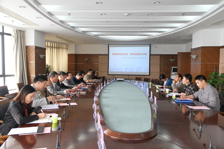 11月11日下午,省厂务公开民主管理示范创建单位专项复查互检工作组成员,省教育工会副主席陈勇、省直机关工会正处级调研员邱为民、省直机关工会经审会主任朱红征、省教育工会维权部部长李长春和省国土资源厅工会干部周慧严一行莅临浙江工商大学,复查互检学校校务公开民主管理示范创建工作。校长张仁寿、纪委书记顾玮出席会议,校办、工会、纪检办等部门负责人以及部分教师代表参加了座谈会。