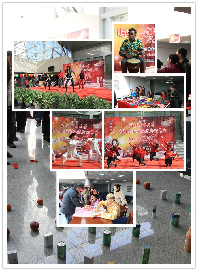 2013年12月31日下午,当新年的钟声敲响在即,为了营造校园喜庆祥和的节日氛围,促进和谐校园建设,校工会会同各分工会及教职工文体社团协会等联合举办了一场融趣味性、娱乐性、知识性和现场咨询服务为一体的浙江工商大学教职工2014迎新游艺活动。本次迎新游艺活动共分为现场歌舞表演、趣味游艺活动、教工社团才艺展示、心理、法律、保健现场咨询、保险金融机构现场业务服务、绿色休闲食品展卖等环节内容,活动精彩纷呈,奖(礼)品丰厚,校纪委书记顾玮和全校500多名教职工一起参与了活动。