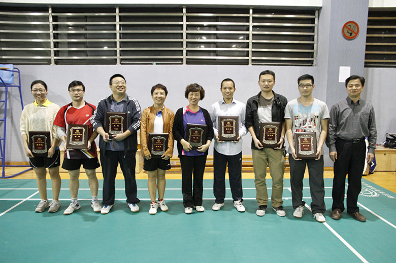 为深入贯彻落实《国务院办公厅关于加快发展体育产业的指导意见》,响应全民健身的号召,为全校教职工搭建体育锻炼的平台,10月28日中午,由校工会、校体育工作部联合举办的浙江工商大学2014“健身杯”教职工团体羽毛球赛圆满举行。经过第一阶段循环赛和第二阶段淘汰赛的激烈角逐,最终:杭州商学院分工会代表队夺得冠军,工商管理学院分工会代表队获得亚军,机关第三分工会代表队获得季军,后勤服务中心分工会、财会学院分工会、金融学院分工会、机关第五分工会、继续教育学院分工会代表队等则分列第四至第八名。比赛结束举行了颁奖仪式,校工会主席王富强为获奖队伍颁发了奖牌。