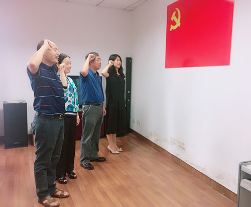 6月29日,校工会党支部全体党员在综合楼1154会议室,听取了党支部书记“践行四讲四有,做合格党员”的微党课。课后,在支部书记的带领下,面向鲜红的党旗,举行了以“不忘初心,增强党性,争当先锋”为主题的重温入党誓词活动。