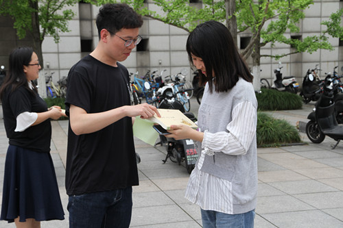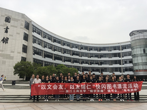 4月23日是第24个世界读书日。浙江工商大学工会、学生处、“儒学茶座”读书会联合“有书”平台,在浙商大图书馆广场开展了以“以文会友以友辅仁”为主题的快闪朗读、图书漂流活动,学校40余名教职工参加了活动。