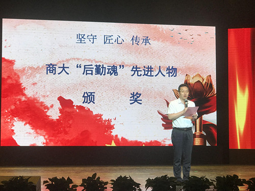晚会展示了2018—2019年度后勤先进集体和先进个人,隆重表彰了2019年“坚守、匠心、传承”后勤魂先进人物并由学生会学生代表为获奖者颁发了荣誉证书。