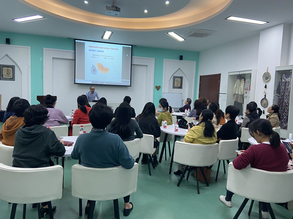 讲座中,饶教授以大量丰富的案例,把前沿的食品纳米颗粒与人体自由基生物学研究的科学新知,结合茶汤、骨汤、河蚬汤等具有健康调养功能的传统食品,以及具有强力抗氧化活性的专利护肤产品,深入浅出的为大家解读了饮食保健背后的科学真义,同时,还为老师们的日常自我调养提出了一些简单易学的实用方法。
