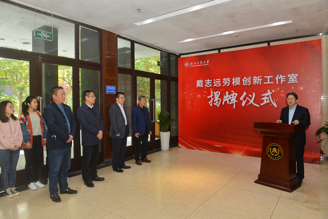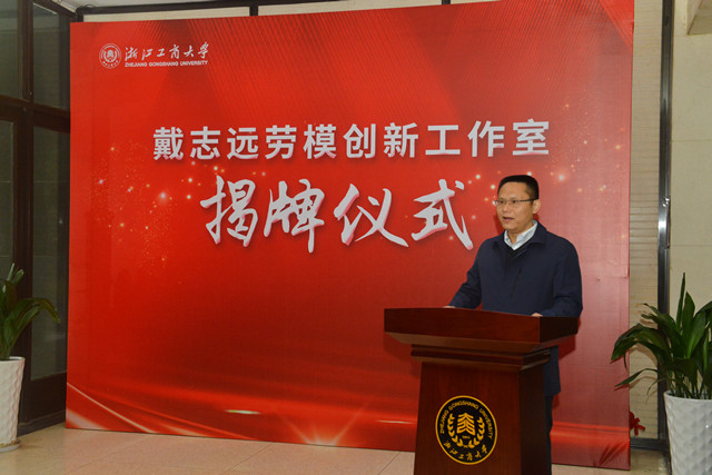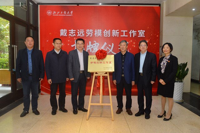 11月6日上午,戴志远劳模创新工作室在浙江工商大学教工路校区揭牌。浙江省总工会一级巡视员、浙江省教育工会主席赵祖地,浙江省教育工会副主席徐立,校党委副书记李军等出席仪式。