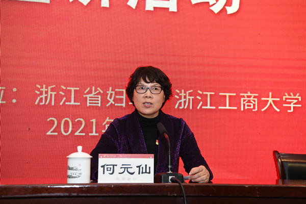 何元仙在讲话中对浙江工商大学对本次活动的大力支持表示感谢。她希望宣讲团成员能坚持学思用贯通、知信行统一,进村社、进家庭、进园区、进岗位、进高校、进网站,用丰富的思想资源和鲜活的典型案例讲好中国故事、浙江故事、女性故事,凝共识、聚众力,为守好“红色根脉”、打造“重要窗口”、推进“共同富裕”贡献智慧和力量。