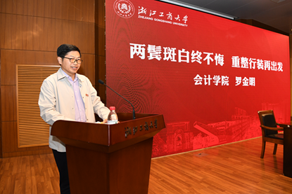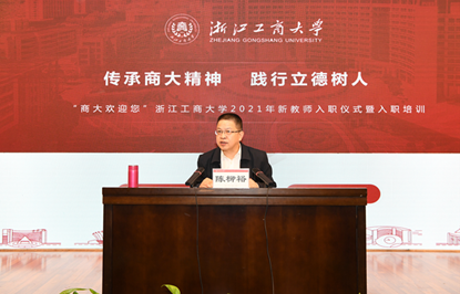 陈柳裕为全体新教师开讲《传承商大精神践行立德树人》思政第一课。他从“辉煌的商大、奋进的商大、美好的商大”三个方面,和新教师畅谈商大从哪里来?商大将去往何处?在学校发展征程上大家能做些什么?他指出,在浩瀚的历史画卷中,浙江工商大学书写了浓墨重彩的一笔,既有栉风沐雨、砥砺前行的过往,也有许许多多不懈奋斗、开拓进取的感人事迹。当前与今后一个时期,学校仍处于一个重要的发展机遇期、窗口期和关键期。每一位教职工都要强化使命意识,切实承担起立德树人、服务社会、推动学校事业发展的责任,并在此过程中实现自身成长和人生价值。他希望全校教职工心怀“国之大者”,将个人发展融入国家学校发展;端正师德师风,不断提升立德树人水平;接力兴校强校,共谱商大事业发展新篇章。