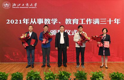 仪式上,李军宣读从事教学、教育工作满三十年的教职工名单。陈柳裕为从事教学、教育工作满三十年的教职工颁发证书,献鲜花,对获得表彰的教师表示祝贺,对新入职的教师表示欢迎。近年来,我校广大教师在教书育人的道路上辛勤耕耘,在科学研究的征途中不懈探索,在管理服务的岗位上尽心尽职,用心血和汗水、学识与智慧,培育出丰硕成果。