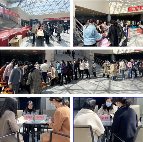 中午,教职工活动中心热闹非凡,女装、丝绸展销、口腔医院义诊、水果、农产品展销等惠服务为广大女教师提供了实打实的优惠,老师们不亦乐乎地互相展示着自己的“战利品”;参与“女职工权益维护知识竞赛”的女教师们带着线上完成的答题截图,参加了刮刮乐抽奖活动,刮出的“女生奖”、“女神奖”、“女王奖”、“参与奖”等奖品不断给老师们制造着节日的惊喜;现场设立的“心理咨询”、“法律咨询”通过面对面聊天的方式,为前来咨询的女教师提供真诚、贴心、专业的帮助。