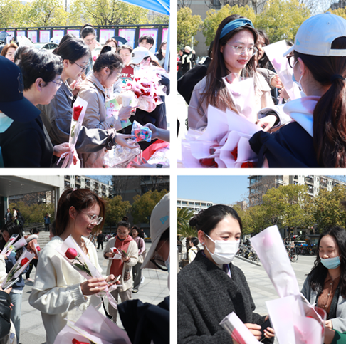 3月8日旭日初升,校园里却早已弥漫着温馨的气氛,“幸福花语”活动的学生志愿者们怀着感恩的心,在教室、办公室门口,为女老师们递上节日的第一支鲜花和贺卡,面对这突如其来的惊喜,老师们的微笑如同绽放的鲜花一样明媚灿烂,暖洋洋的欢声笑语里彰显作为商大女教师的幸福和自豪。