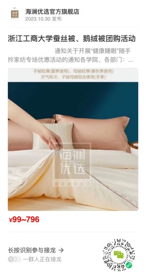 根据部分教职工的需求,校工会甄选了桐乡新悦家纺有限公司蚕丝被和“畅游浙江”旅游卡供教职工选择,具体优惠和购买方式如下: