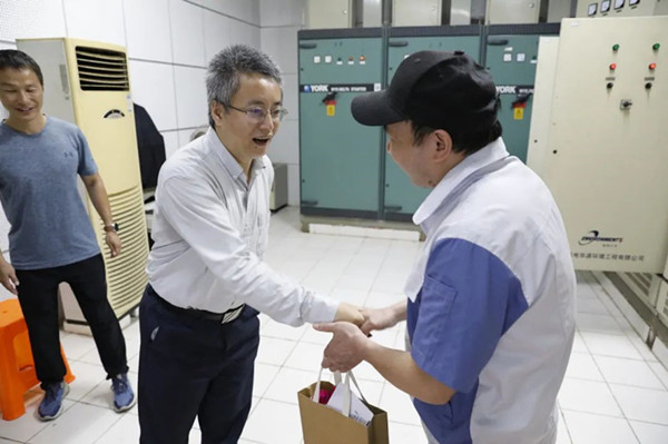 7月14日,校长王永贵走访慰问在高温下坚守一线工作的教职工,向他们致以最诚挚的问候与深切的关心。校党委副书记方向明陪同慰问。