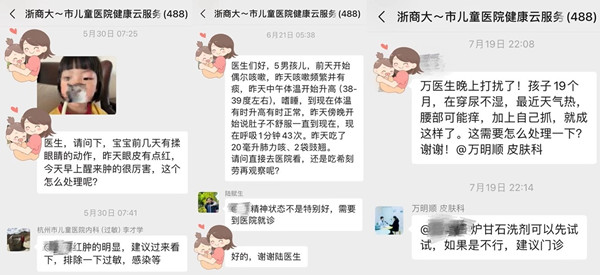 “通过‘云服务站’可以第一时间线上问诊,小问题按照医生指导快速处理,有必要及时就诊,对解决带娃时遇到的困难帮助非常大。”来自浙江工商大学计算机科学与技术学院的王老师为医生的辛勤奉献和“云服务站”的专业便捷赞不绝口。