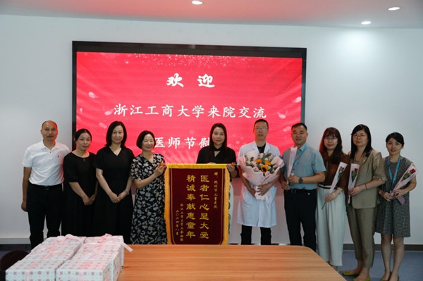 今天是第七个中国医师节,在这个特别的日子里,浙江工商大学工会一行代表学校教职工,特地来到杭州市儿童医院,对医生们表达深深的感激,为他们送上了锦旗与鲜花,感谢专家团队长期无私提供公益、专业、细致的医疗解答。