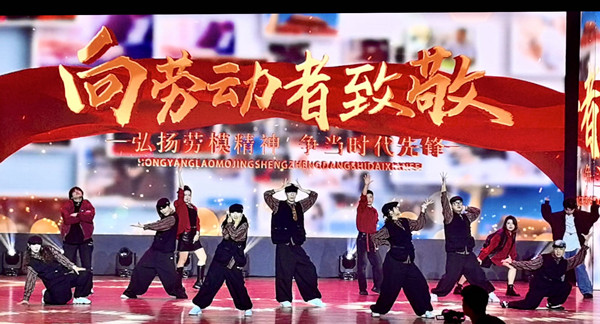 我校的节目《劳模的荣光——商大劳模新说唱》用说唱、街舞等师生喜爱的、年轻时尚的表演形式,以动感的旋律和节奏展示了学校在弘扬劳模精神和工匠精神方面的创新做法和人才培养、师德建设方面的成果,展现了我校戴志远、蒋承勇、顾青三位劳模在教学科研中的光辉事迹,使劳模精神深入人心,给观众留下了深刻印象。