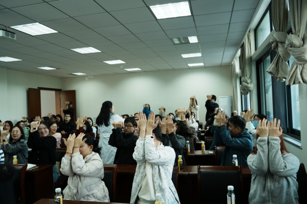 罗医生从询问大家入睡时间以及是否具有颈椎酸痛等问题入手,引发了在场辅导员的共鸣。罗医生围绕颈椎病的预防与保健、湿气的调理、内脏排毒时间表、春夏秋冬不同季节的养生知识等方面,为老师们提供了一场养生知识盛宴。过程中,罗医生指导大家一起做一些适合日常练习的健身操,帮助大家放松了身体,减轻了日常工作中的紧张和压力。随着季节的更迭,中医养生的智慧告诉我们,每个季节都有其独特的养生之道。身体是革命的本钱,让我们行动起来,更好地调整生活习惯,注意饮食和锻炼,预防疾病,保护好身体健康。