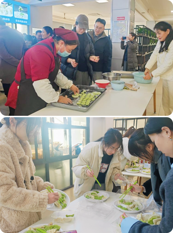 冬至,这个满溢温情与团圆气息的节气,后勤服务中心工会携手法学院于流水一楼家味饺子旁餐叙场地举办了一场“岁启饺香・瑞气盈怀”包饺子迎冬至活动。