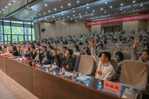 校党委书记郁建兴指出,2025年是决胜收官“十四五”、高位开局“十五五”的关键之年,是深化改革、提质增效、破题发展的重要阶段,改革发展、追赶超越的任务很重,每一件事的做成,对全面建成高水平大学来说都意义重大。如何适应国家和我省高等教育发展新的形势,加快推动学校高质量发展,让特色更特、亮点更亮、实力更强,基础在教师,关键在教师,希望也在教师。本次大会共收到41件代表提案,集中反映了师生关切的重点议题,学校将认真梳理研究各项意见建议,结合深入贯彻中央八项规定精神学习教育的开展和学校重点工作的推进,及时将代表们的建议吸纳到学校的相关工作和决策中。全校教职工要在使命愿景的引领下,坚定信心,群策群力,以更高站位、更宽视野、更实举措,推进高水平大学建设。郁建兴强调,学校使命愿景红皮书提出的发展目标核心是把战略蓝图变成行动路线图、目标施工图,必须坚持党的全面领导,不断塑造全面突破、整体推进的良好态势,以习近平总书记的指示关爱为办学治校的最大政治优势,强化政治引领,树立卓越意识,坚定必胜信念,拿出必争一流的斗志和知难而进的行动,凝聚建设高水平大学的动能;必须坚持弘扬“六干”作风,在改革创新、争先进位中彰显担当和作为,自觉把工作放到大局中思考、定位、实践,以改革创新突破路径依赖,以钉钉子精神抓实干见实效,打造干部铁军,全面提升办学质量和水平;必须坚持以师生为中心,汇聚全校“想在一起、干在一处”的共识和行动,继续用改革精神回应师生需求、推动师生成长发展,让接地气、冒热气的“好点子”“金点子”转化为真管用、真奏效的“好方子”“金钥匙”,让广大师生更有获得感、幸福感、安全感。