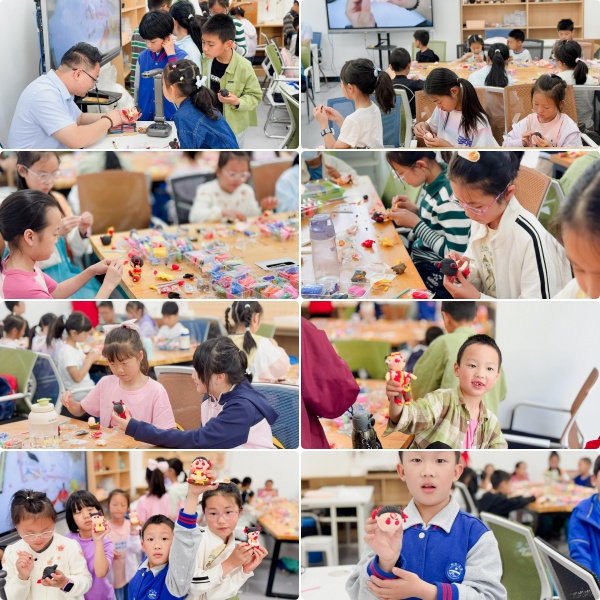 孩子们围坐在桌前,眼中满是期待与好奇。在老师的悉心引导下,他们小心翼翼地打开材料包,认真聆听每一个制作步骤。揉、捏、挑、压,一双双稚嫩的小手在面团上灵动翻飞,仿佛被赋予了神奇的魔力。他们全神贯注,神情专注,俨然一副专业面塑大师的模样。随着时间的悄然流逝,一个个栩栩如生、形态各异的面塑“哪吒”在孩子们的指尖诞生。孩子们自豪地举起自己的作品,脸上洋溢着灿烂的笑容,那笑容如同春日里盛开的花朵,绽放着成功的喜悦。