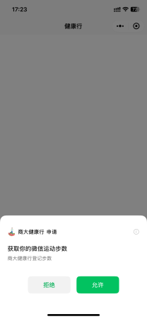 登陆后,“商大健康行”会提示申请获取你的微信运动步数,选择允许,即完成绑定