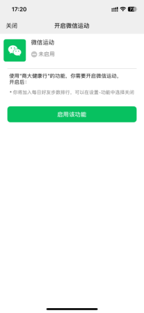 登陆后,“商大健康行”会提示申请获取你的微信运动步数,选择允许,即完成绑定。