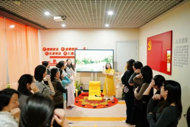 随着轻柔而富有节奏的音乐响起,活动迎来了自然律动的高潮。老师们不再拘束于固定的姿势,而是闭上双眼,跟随旋律的引导,让身体自由地、舒缓地律动。无需编排,不必技巧,每一次抬手、每一次舒展,都是内心情绪最真实的流淌与释放。空气中弥漫的芳香与流动的音符交织,现场化作一片温暖而充满生命力的能量场,每个人都在其中找到了属于自己的节奏与喜悦。