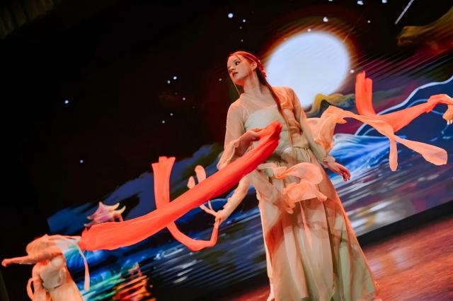 衣袂翩跹如云,追月舞步如诗,共绘一轮属于世界的明月。