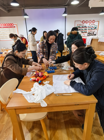 公共管理学院工会特别准备了小兔子、小鸭子等萌趣布偶模板。教职工们用皮筋在布料上“绣”出五官轮廓,再通过局部浸染赋予布偶渐变色彩。法学院陈老师的“五彩小兔子”布偶,蓝橙紫绿相间中透出憨态可掬的神韵,引得众人纷纷拍照。