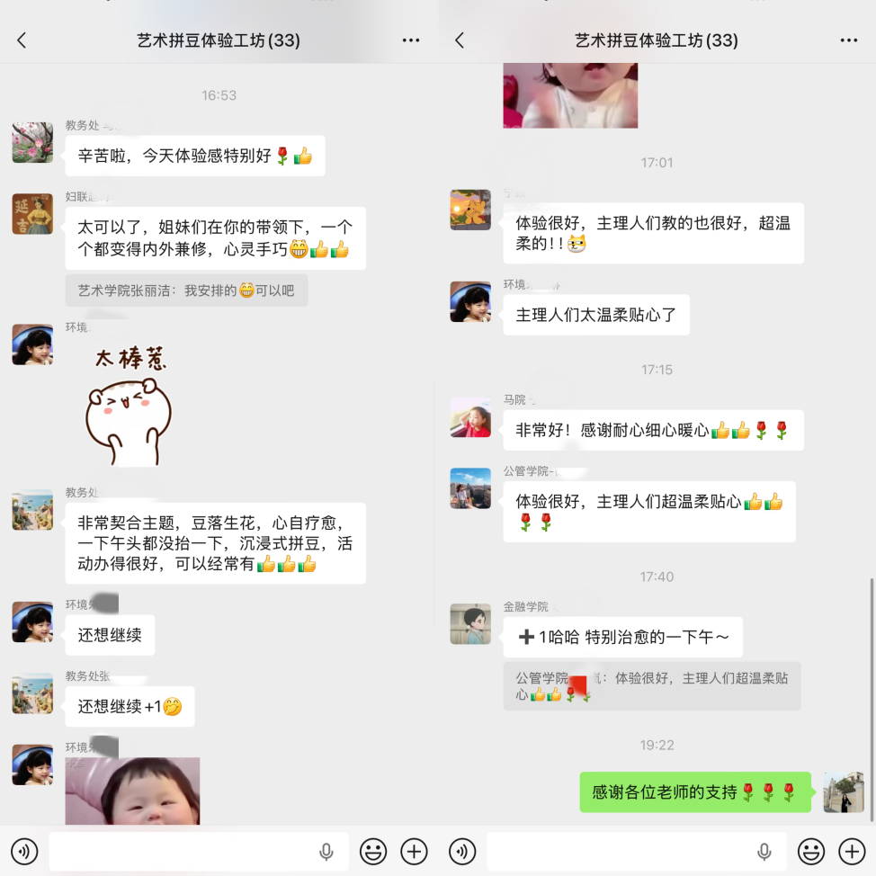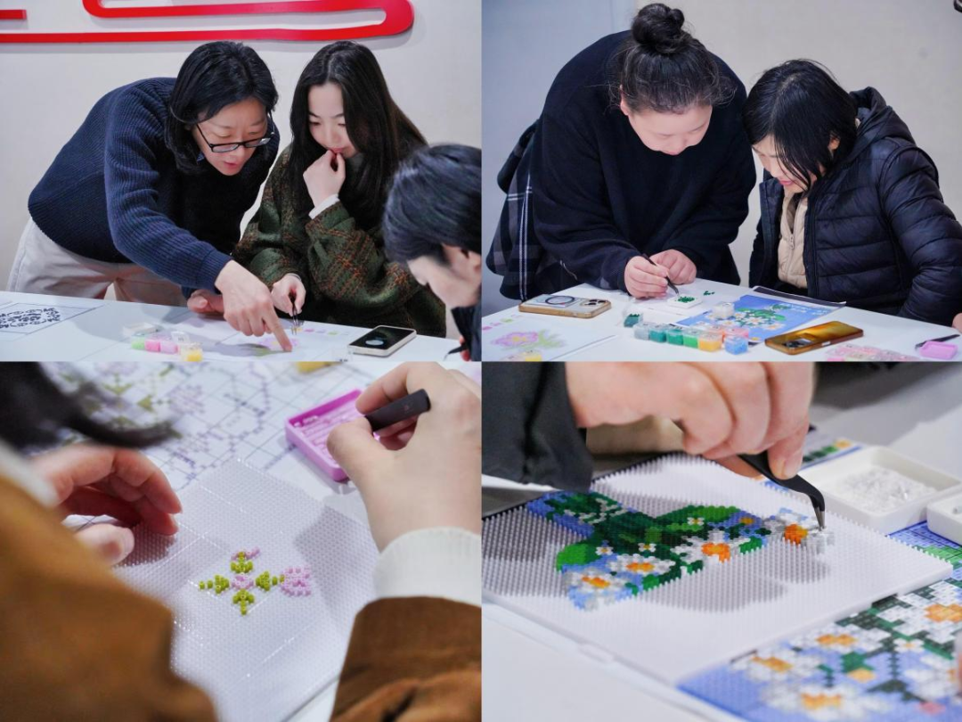 “拼豆的过程让我完全静下心来,只专注于眼前的色彩和形状,这种感觉很治愈。”一位参与老师分享道。“看着一颗颗小豆在自己手中变成一朵花,很有成就感,也很有仪式感。”