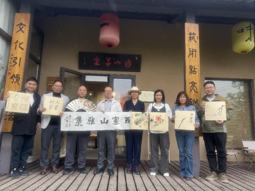 为进一步加强协会凝聚力,丰富会员文化生活,2026年4月12日,由浙江工商大学教职工书画协会主办的书画交流笔会在湖州妙山草堂老邓漫画馆顺利举行。部分成员相聚在绿意盎然、世外桃源般的妙山草堂,共赴一场书画之约,共商书画协会发展大计。